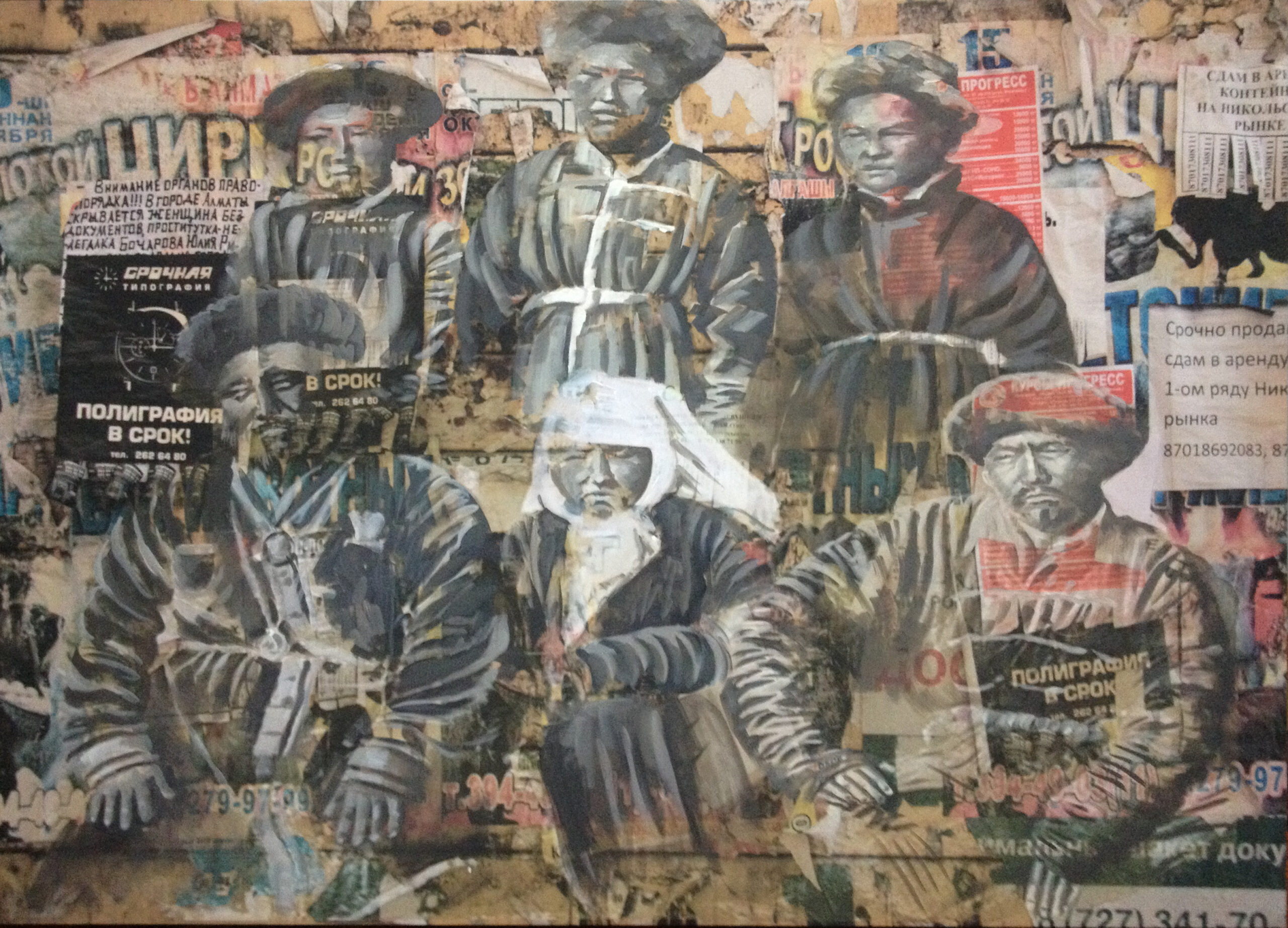 I was thinking the best way is to find archival photos, photo documents, and paint them like models on the urban surfaces I mentioned before, corresponding to our current life. I did this juxtaposition of past and present, of different surfaces, so they could exist together in the eye of the viewer.
